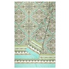 MARECHIARO - Ein detailreiches Muster, das aus einer originellen, geometrischen Anordnung von Paisley-Motiven besteht. Die Elemente bilden eine rautenförmige Struktur, die den eindrucksvollen Mittelteil des Dessins bestimmt. Umrahmt wird er von einer Bordüre mit Streifen. Es gibt drei Farbvarianten: die erste in warmen Orange- und Terrakotta-Tönen mit zarten Noten in Hellblau; die zweite in entspannenden Tönen