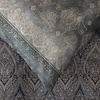 KERALA - Ein elegantes und raffiniertes Dessin, das an die charakteristischen und exklusiven Dekorelemente des Granfoulard-Stils erinnert. Ein Strich aus matten Farben mit dünnen, zarten Linien formt detaillierte ornamentale Medaillons aus Paisleymustern und floralen Elementen.