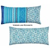 A harmonious, fresh, summery ensemble reminiscent of ceramic art. Two color variations are offered: one in shades of blue and turquoise, the other in warm and vibrant fuchsia and orange.