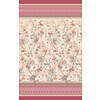The elements of this richly detailed design are inspired by the splendor and energy of lush vegetation, typical of the botanical gardens surrounding the lakeside villas. A romantic and evocative fresco, inviting and harmonious, composed of green spaces, vibrant colors, and intoxicating scents. The central section features an elegant floral scroll motif with butterflies and small birds, highlighted by a striped border with ornamental micro-motifs.