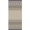 Imperia -A design composed of a sophisticated interplay of bands of unusual paisley motifs in various shapes and sizes. The central section consists of a ramage of micro-motifs reminiscent of the bodices of traditional costumes. A band of decorative geometric shapes and a border with larger paisley motifs alternate harmoniously and evenly. The three versions: the first features neutral beige tones with powder, ice blue, and gray; the second warm red and burgundy tones with golden highlights; the third features fresh tones of light blue with fango accents.