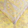 The Indian Roses design is available in three variations: pastel shades of jade, camellia pink, and a hint of fuchsia; bright and bold lemon tones; and delicate shades of sandy yellow, blush, ivory white, and peach.