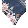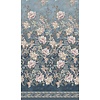 There are two color variations: one in shades of blue and beige with flowers in dusty pink and terracotta; the other in warm taupe and mother-of-pearl with flowers in gold, green, and pastel yellow.